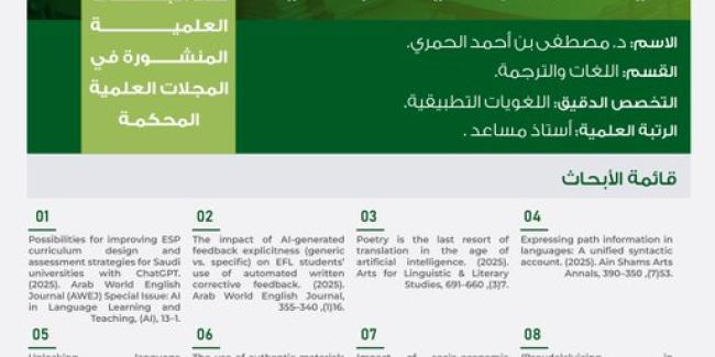 Inspiring Research Profiles among faculty members of the College of Humanities and Social Sciences in #NorthernBorderUniversity . Dr. Mustafa Ahmed AlAhmari Assistant