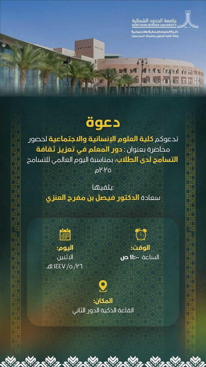 رعى صاحب السمو الملكي الأمير فيصل بن خالد بن سلطان بن عبدالعزيز - حفظه الله - أمير منطقة الحدود الشمالية فعاليات حفل اليوم الوطني الرابع والتسعين الذي نظمته جامعة الحدود الشمالية والإدارة العامة للتعليم بالمنطقة، وذلك مساء يوم الأربعاء 22/3/1446هـ الموافق 25/9/2024م في مقر المدينة الجامعية بمدينة عرعر، بحضور منسوبي الجامعة ومنسوبي إدارة التعليم، والمدعوين من مدراء القطاعات الحكومية، ووجهاء وأبناء المنطقة.