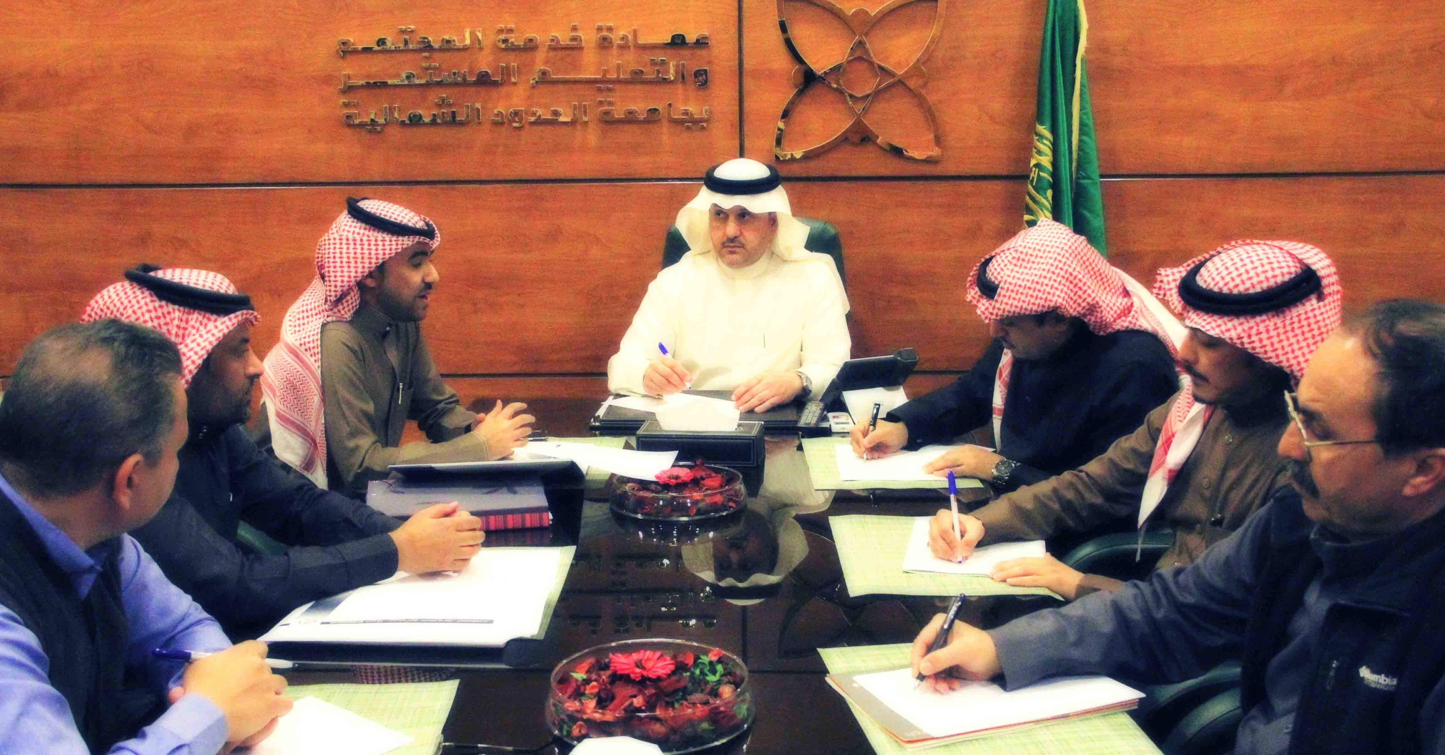التقى سعادة عميد خدمة المجتمع والتعليم المستمر بالجامعة الدكتور معن بن محمد المدني، في قاعة الاجتماعات بمبنى العمادة في عرعر،