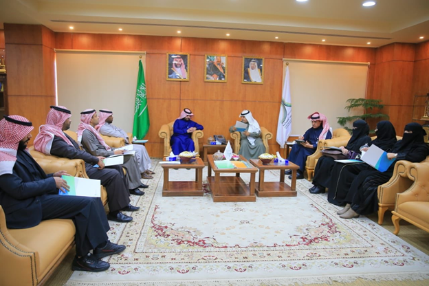 مدير الجامعة المكلف الأستاذ الدكتور إبراهيم الزهراني، يستقبل في مكتبه مدير بنك التنمية الاجتماعية الأستاذ يوسف العنزي والوفد المرافق له،