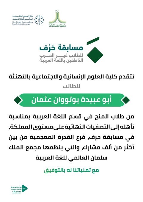 تقدم منحة جامعة الحدود الشمالية برنامجها لاستقطاب الطلاب غير السعوديين المتفوقين دراسياً من المقيمين داخل المملكة العربية السعودية او خارجها؛ بهدف تمويل رسوم دراستهم و
