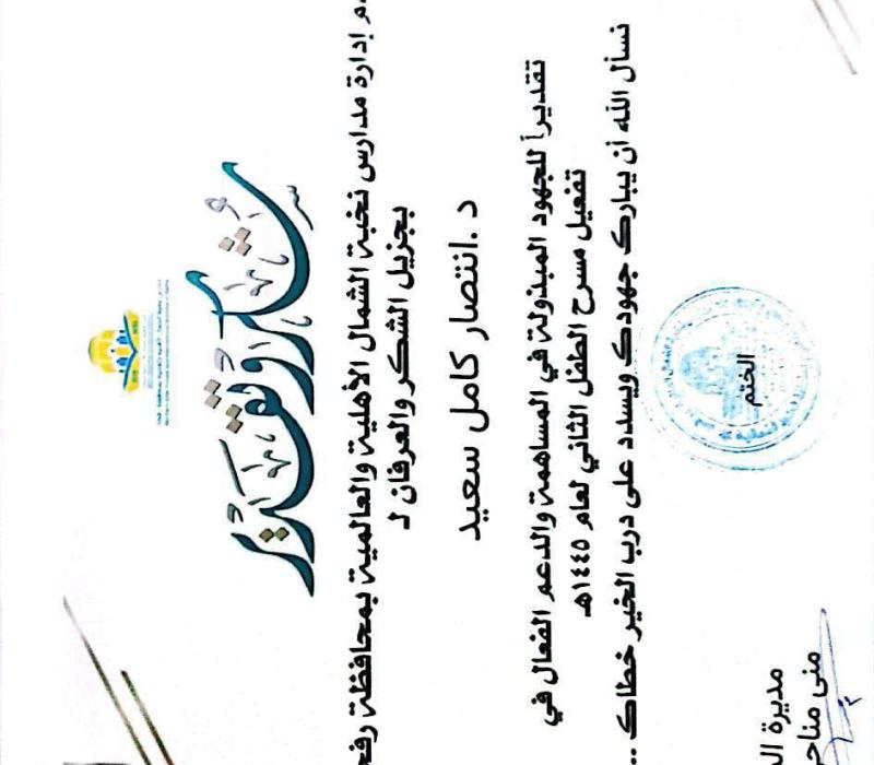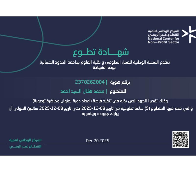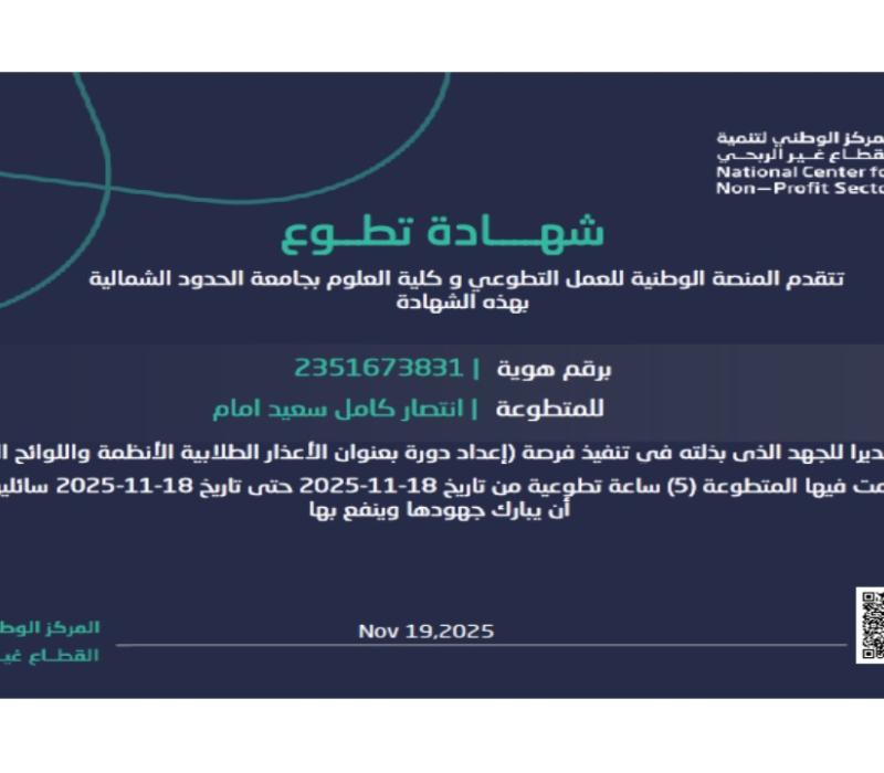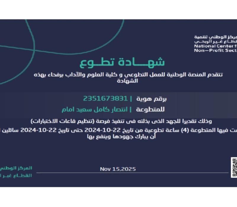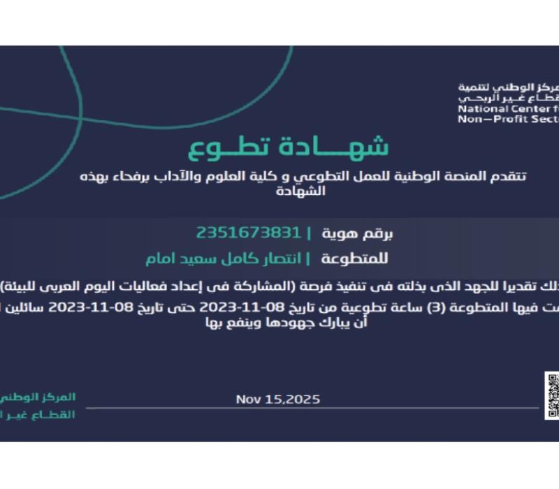 شهادة تطوع المشاركة في اعداد فعاليات اليوم العربي للبيئة