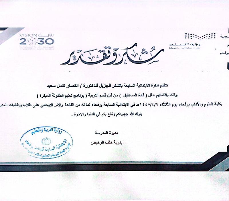 خدمة مجتمعية في المدرسة الابتدائية السابعة برفحاء (حفل قادة المستقبل)