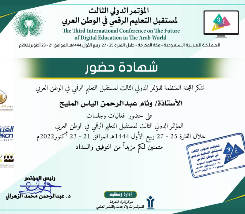 المؤتمر الدولي الثالث لمستقبل التعليم الرقمي في الوطن العربي المملكة العربية السعودية - مكة المكرمة